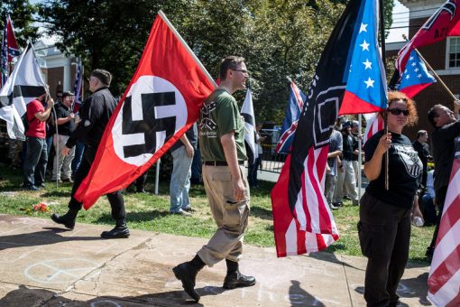 Durante protestos contrários a retirada de uma estátua de Robert E. Lee, principal general dos Estados Confederados na Guerra de Secessão (o lado escravocrata), da cidade média de Charlottesville, na Virgínia, um supremacista branco atropelou propositadamente vários “contra-protestantes”, matando uma pessoa e ferindo outras 19, três de forma grave.