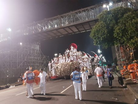 Aliás, para o leitor que não tem o hábito, uma escola por noite é o suficiente. No Grupo de Acesso A de 2004 cometi a loucura de desfilar em quatro escolas na mesma noite. Resultado: no Tuiuti, que era a última, passei me arrastando – e com o joelho estourado… Aliás, depois que operei os dois joelhos em 2015 tenho me limitado a duas escolas por ano – em 2018, será somente uma.