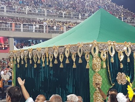 – O elemento cenográfico “O santo e o orixá”, foi baseado na obra do artista Leandro Barra. Lamentavelmente este item não pôde desfilar no desfile das campeãs por questões até hoje não muito claras. Dois momentos sobre o mesmo caso: uma foto em preto e branco do barracão da Mangueira vazio para o desfile das campeãs tendo apenas o elemento sozinho em seu interior; o uso do termo “ajuste” em um painel da Carnavália Sambacon para explicar o ocorrido e o Temer Vampirão (No ano seguinte pela Tuiuti).
