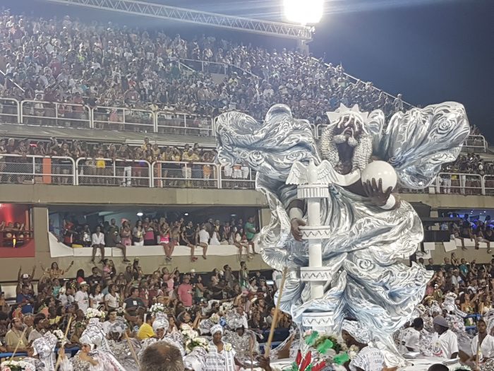 Uma das imagens mais simbólicas de todo o carnaval foi o tripé que representava Jesus Cristo de um lado e Oxalá do outro. Além de muito bem realizado esteticamente, foi um símbolo perfeito do sincretismo religioso traduzido pelo enredo. Foi uma demonstração evidente de que é possível conciliar beleza e singeleza sem luxo excessivo e opulência.