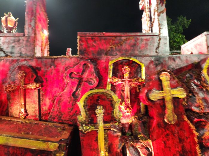 Por mais que aceitemos a licença poética do carnavalesco, o Reino de Aioká (um dos nomes para Yemanjá) fica no fundo da baía, ou no máximo no mar, próximo a costa, onde seriam os “domínios” de Yemanjá. Não obstante, mesmo com toda a licença poética do carnavalesco, tudo retratado nesse setor ou ficava fora dos “limites” de Aioká (petróleo baiano, especialmente) ou em ilhas, bem acima de onde ficaria o tal reino. Foi um setor que me incomodou bastante, especialmente pela ala do petróleo, já que o petróleo baiano fica bastante terra adentro, ou já em mar aberto, fora do “Reino de Aioká”.